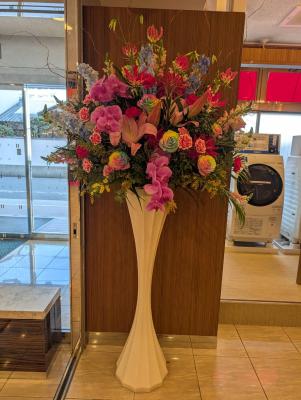 【お祝い花】プロにおまかせ 豪華アレンジメント「ピンク・赤系」