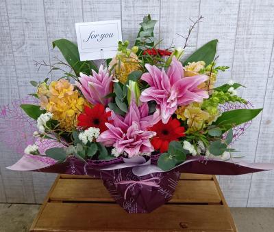 【お祝い花】プロにおまかせ アレンジメント「赤系」3,850円