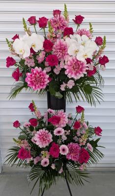 ピンクバラを入れたピンク系おまかせアレンジ