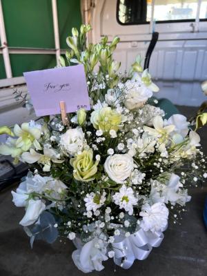 【お悔やみ・お供え】プロにおまかせ アレンジメント「白上がり」3,850円