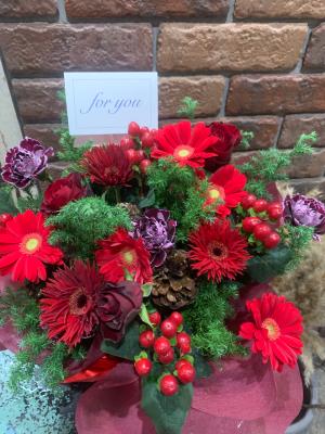【お祝い花】プロにおまかせ ブーケ「赤系」3,850円