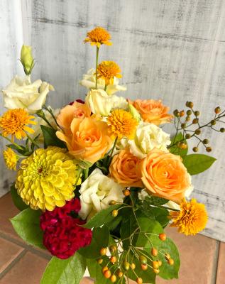 【お祝い花】プロにおまかせ アレンジメント「黄色・オレンジ系」3,850円