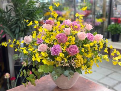 【お祝い花】プロにおまかせ アレンジメント「黄色・オレンジ系」3,850円