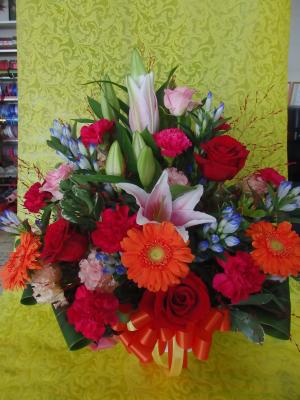 【お祝い花】プロにおまかせ アレンジメント「赤系」3,850円