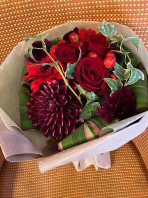 【お祝い花】プロにおまかせ ブーケ「赤系」3,850円