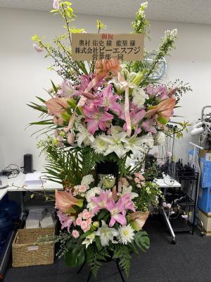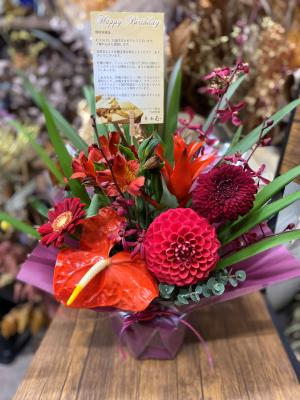 【お祝い花】 プロにおまかせ 豪華アレンジメント「ピンク・赤系」