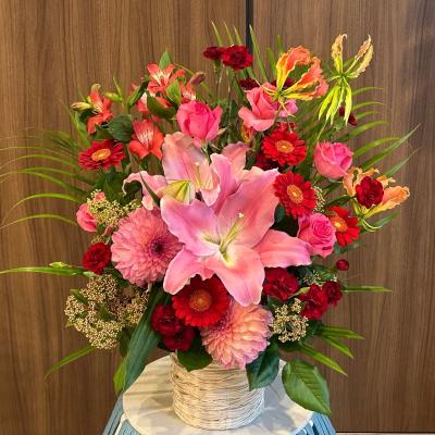 ピンクバラを入れたピンク系おまかせアレンジ