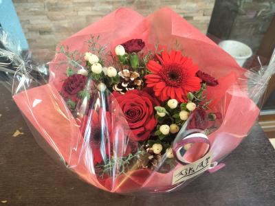 【お祝い花】プロにおまかせ ブーケ「赤系」3,850円