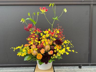 【お祝い花】プロにおまかせ アレンジメント「黄色・オレンジ系」3,850円