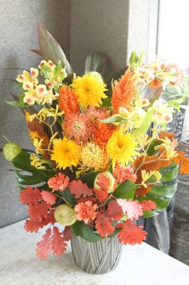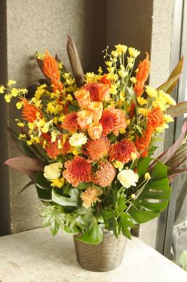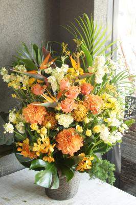 【お祝い花】プロにおまかせ アレンジメント「黄色・オレンジ系」3,850円