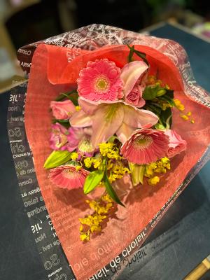 ピンクバラを入れたピンク系おまかせアレンジ
