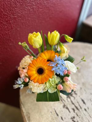 オレンジバラ入れたオレンジ・イエロー系おまかせアレンジ