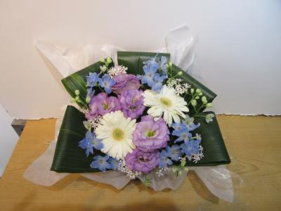 母の日限定 カーネーションにブルーが可愛いアレンジメント (かすみ草入り)