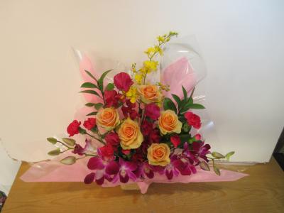 母の日!人気!オレンジのバラ!明るく可愛いアレンジ