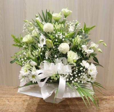 【お悔やみ・お供え】プロにおまかせ アレンジメント「白上がり」3,850円