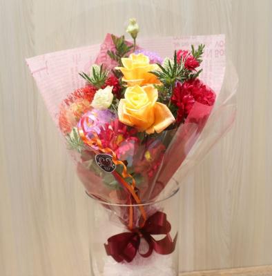【お祝い花】プロにおまかせ ブーケ「赤系」3,850円
