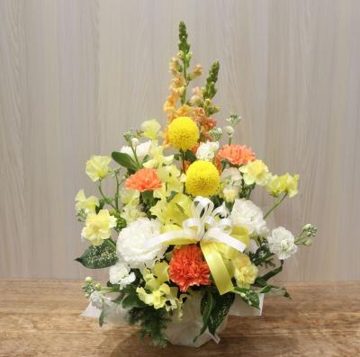 オレンジバラ入れたオレンジ・イエロー系おまかせアレンジ