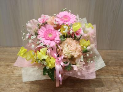 ピンクバラを入れたピンク系おまかせアレンジ