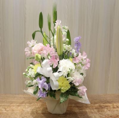 お供えアレンジ(淡い色入り)