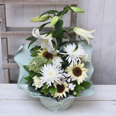 【お悔やみ・お供え】プロにおまかせ アレンジメント「白上がり」3,850円