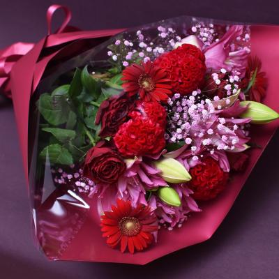 【お祝い花】プロにおまかせ ブーケ「赤系」3,850円