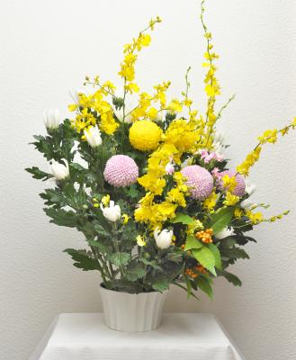 お供えアレンジ(淡い色入り)