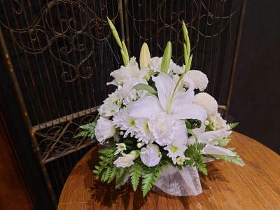 【お悔やみ・お供え】プロにおまかせ アレンジメント「白上がり」3,850円