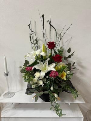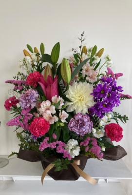 【お祝い花】プロにおまかせ 豪華アレンジメント「ピンク・赤系」