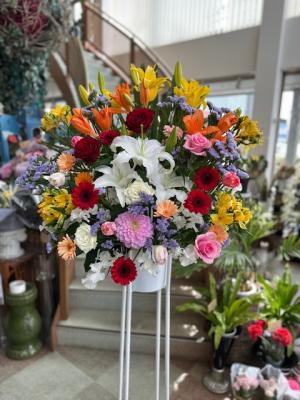 【お祝い花】プロにおまかせ 豪華アレンジメント「黄色・オレンジ系」
