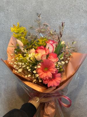 トルコギキョウ入れたピンク・パープル系おまかせアレンジ