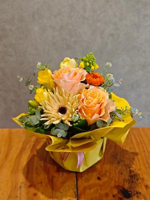 オレンジバラ入れたオレンジ・イエロー系おまかせアレンジ