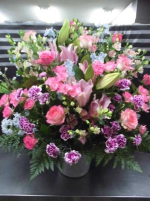 トルコギキョウ入れたピンク・パープル系おまかせアレンジ
