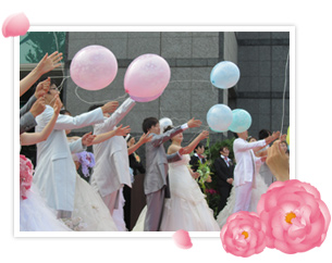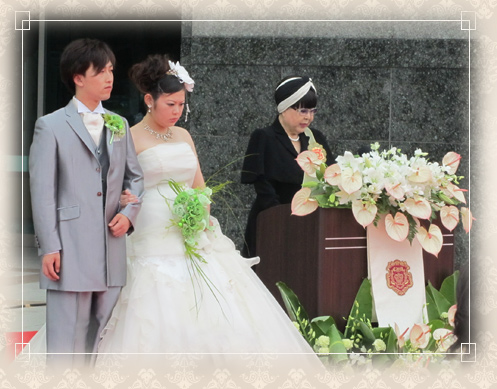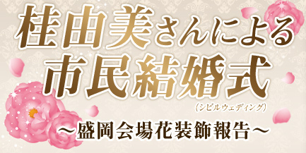 全日本ブライダル協会(会長桂由美氏)が東日本大震災により甚大な被害で、被災地の皆様が毎日を辛抱強く過ごしていている中で、未来を担い、希望をつくっていくであろう被災地のカップルの皆様に市民結婚式(シビルウェディング)10組プレゼントされるという企画があり、7月3日の釜石会場に続き7月30日の盛岡駅西通マリオスにて開催されましたのでご報告いたします。