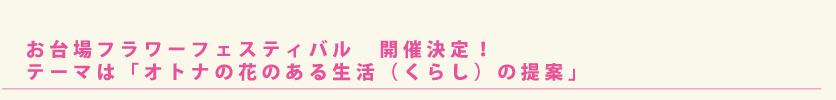 「オトナの花のある生活(くらし)の提案」をテーマとして、花にまつわるイベントで、癒し、安らぎへと誘う花のある生活を提案します。