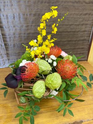 【お祝い花】プロにおまかせ アレンジメント「黄色・オレンジ系」3,850円
