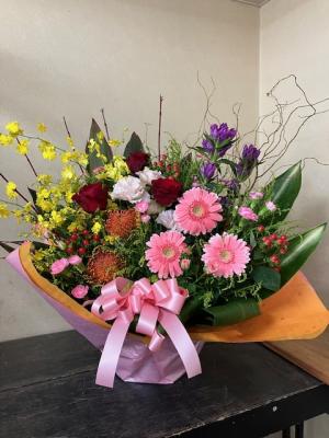 【お祝い花】プロにおまかせ ブーケ「赤系」3,850円
