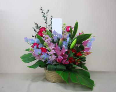 トルコギキョウ入れたピンク・パープル系おまかせアレンジ