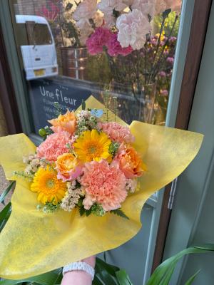 【お祝い花】プロにおまかせ豪華 ブーケ「黄色・オレンジ系」11,000円