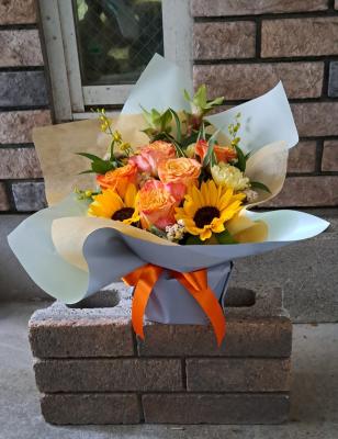 【お祝い花】プロにおまかせ アレンジメント「黄色・オレンジ系」3,850円
