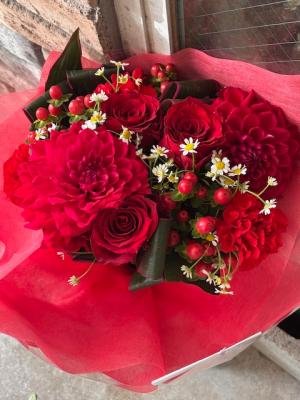 【お祝い花】プロにおまかせ ブーケ「赤系」3,850円