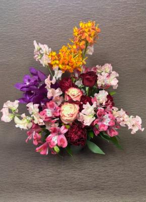 トルコギキョウ入れたピンク・パープル系おまかせアレンジ