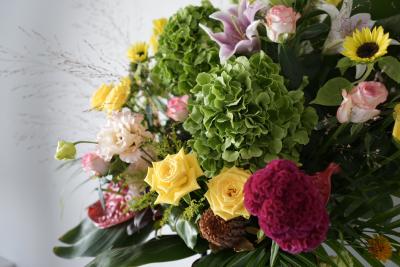 【お祝い花】プロにおまかせ アレンジメント「黄色・オレンジ系」3,850円