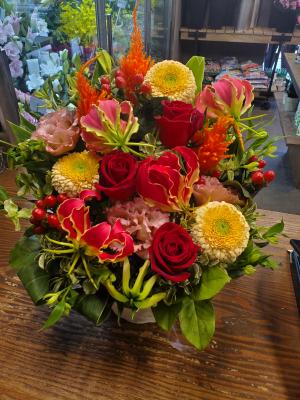 【お祝い花】プロにおまかせ ブーケ「赤系」3,850円