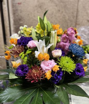 トルコギキョウ入れたピンク・パープル系おまかせアレンジ
