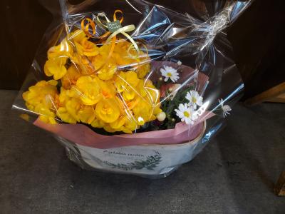 オレンジバラ入れたオレンジ・イエロー系おまかせアレンジ