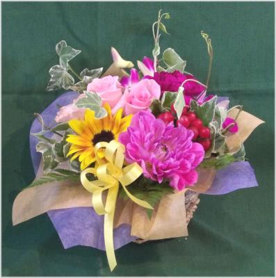 【お祝い花】プロにおまかせ ブーケ「赤系」3,850円