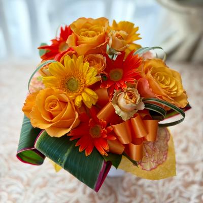 ★オレンジ薔薇とカーネーションのアレンジ★誕生日・恋人の日・結婚記念日・送別・・・大阪市阿倍野区からお届けします