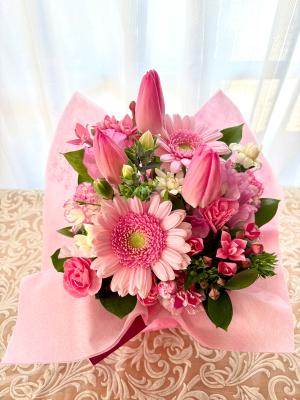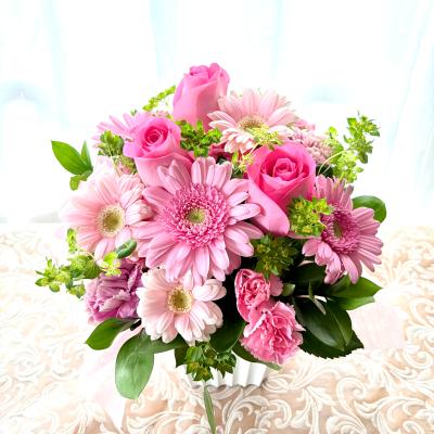 プチ贅沢なアレンジメント Lovely Pink (チューリップのフラワーアレンジメンント)ピンク系
