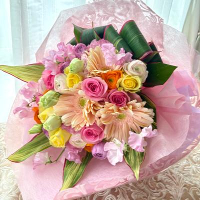 大人のブーケ OrangePalace (バラとガーベラの花束)黄色オレンジ系 誕生日、結婚記念日、お祝い、歓送迎(送別、歓迎)、退職祝い、発表会