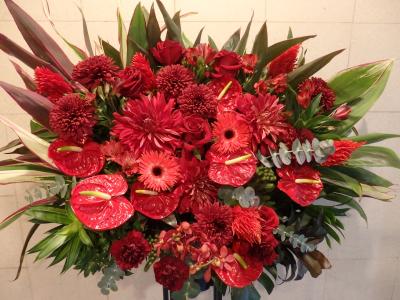 【お祝い花】プロにおまかせ ブーケ「赤系」3,850円